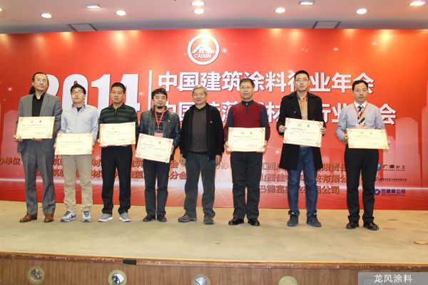 2014.12年會(huì)上中國(guó)建筑裝飾裝修協(xié)會(huì)建筑涂料分會(huì)給龍風(fēng)涂料公司