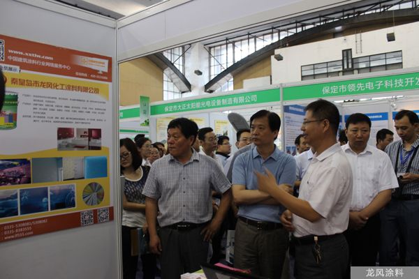 2014.7河北省住建廳舉辦的新材料新技術(shù)唐山展會(huì)上省有關(guān)領(lǐng)導(dǎo)參觀龍風(fēng)涂料展廳